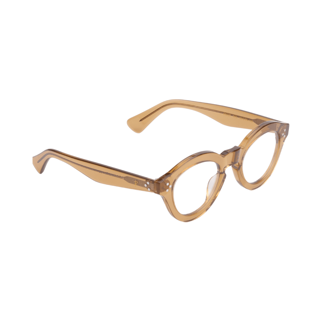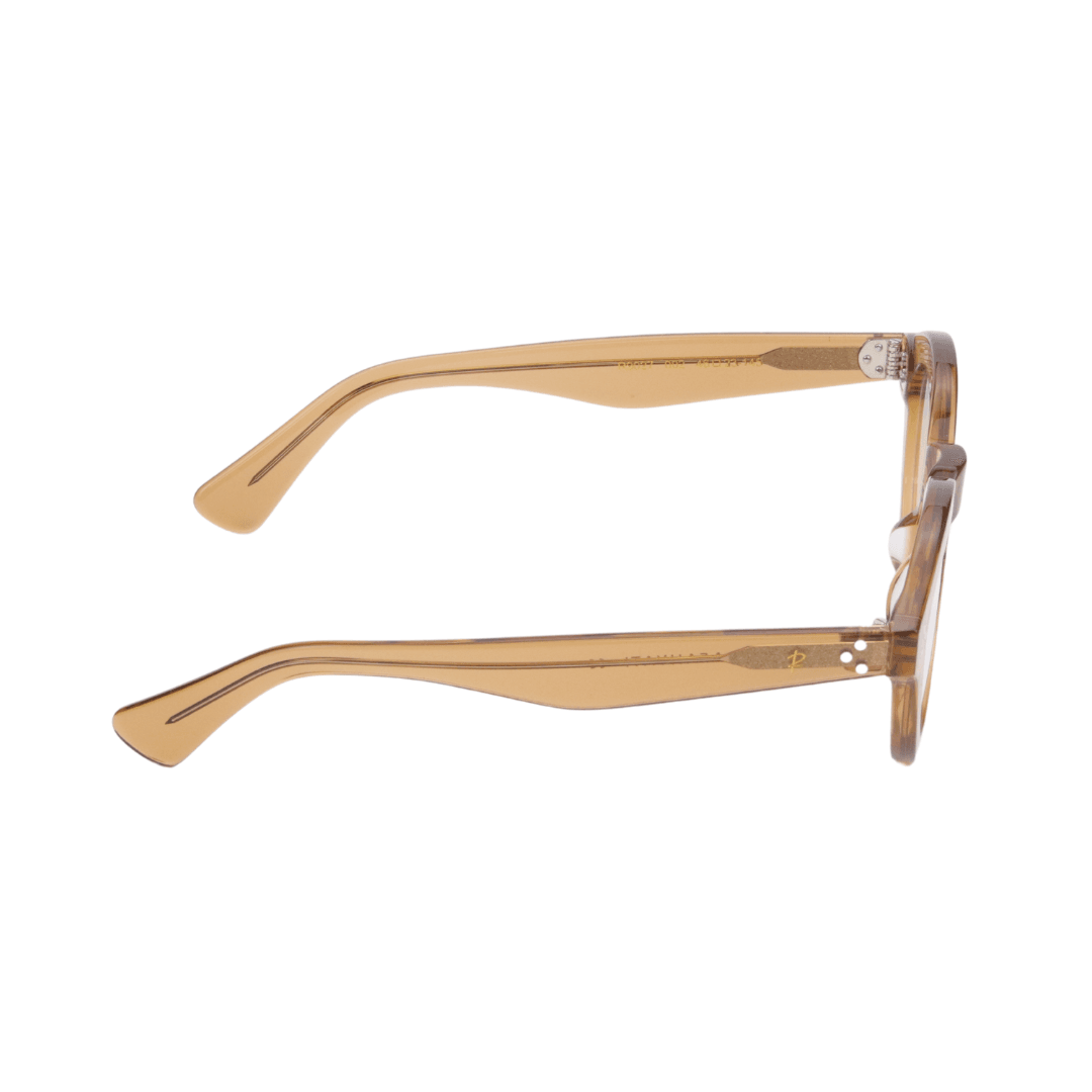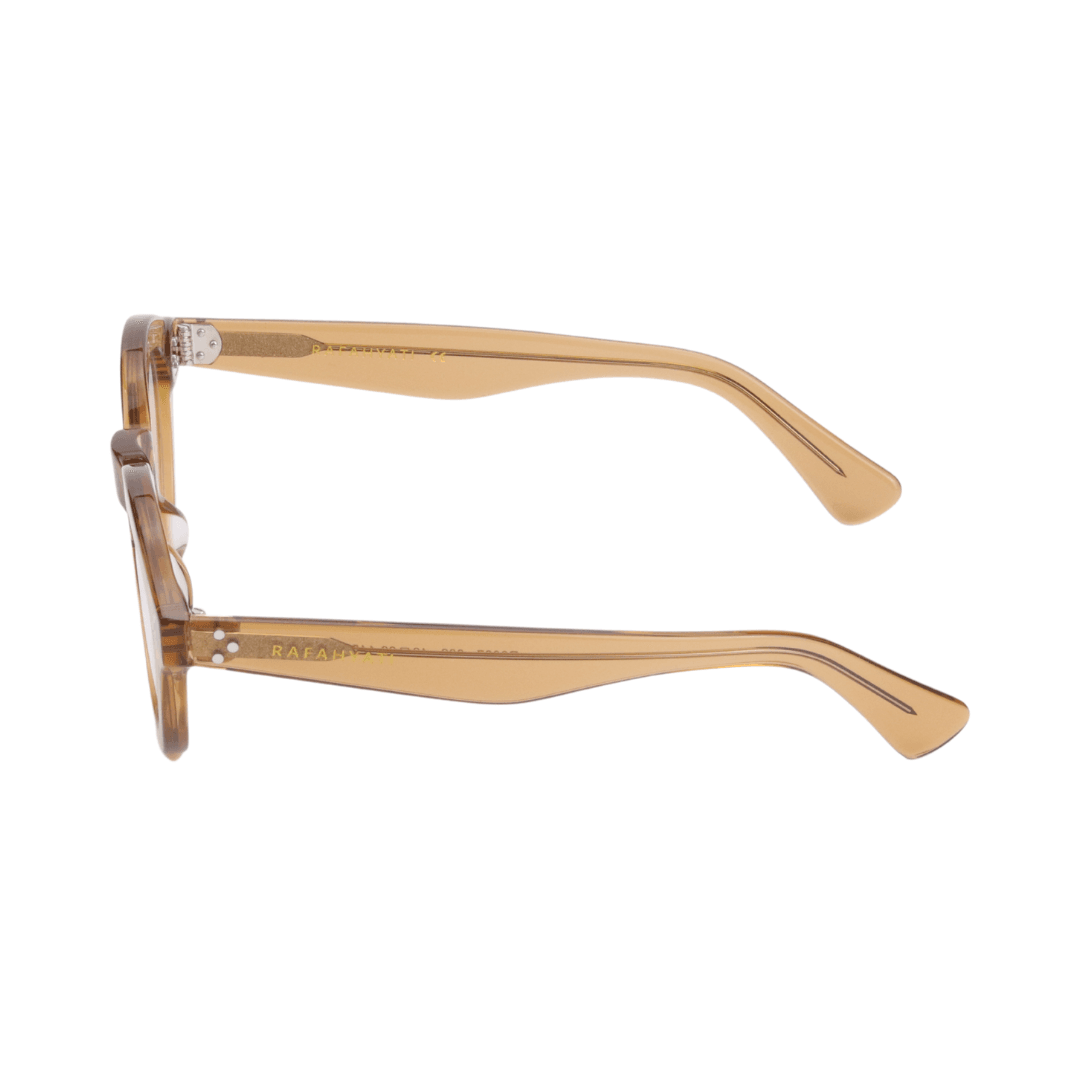 • Design : Lunettes de protection au design rond , La couleur de la monture  Nude/Marron translucide, pour une allure minimaliste et élégante, Détails  Rivets décoratifs sur la face avant et signature « Rafahyati » dorée sur la branche