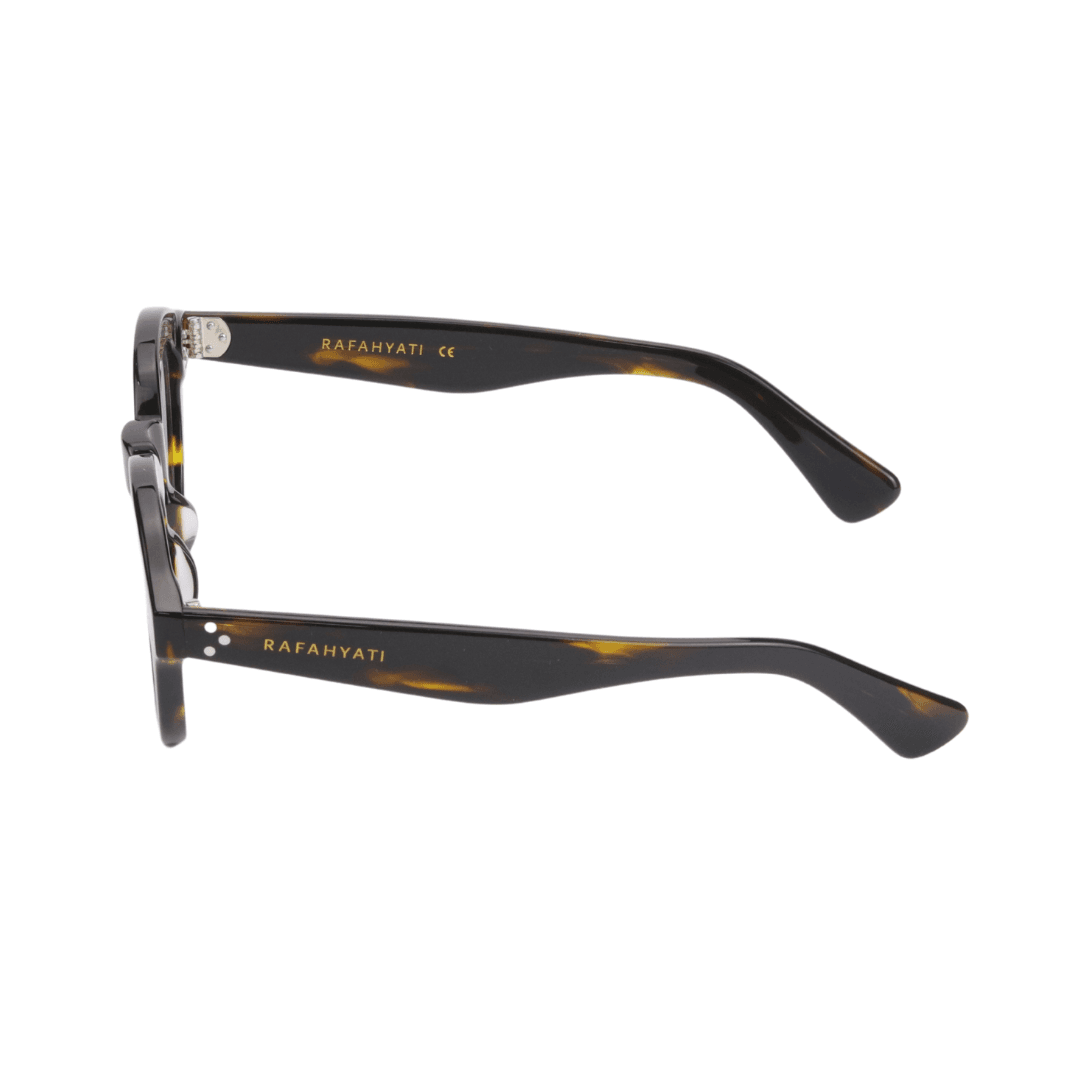 • Branches :Finitions en acétate écaille brillant, avec détails en métal doré pour une touche d’exclusivité. Gravure « Rafahyati » en doré sur la branche gauche, signe d’un design haut de gamme.