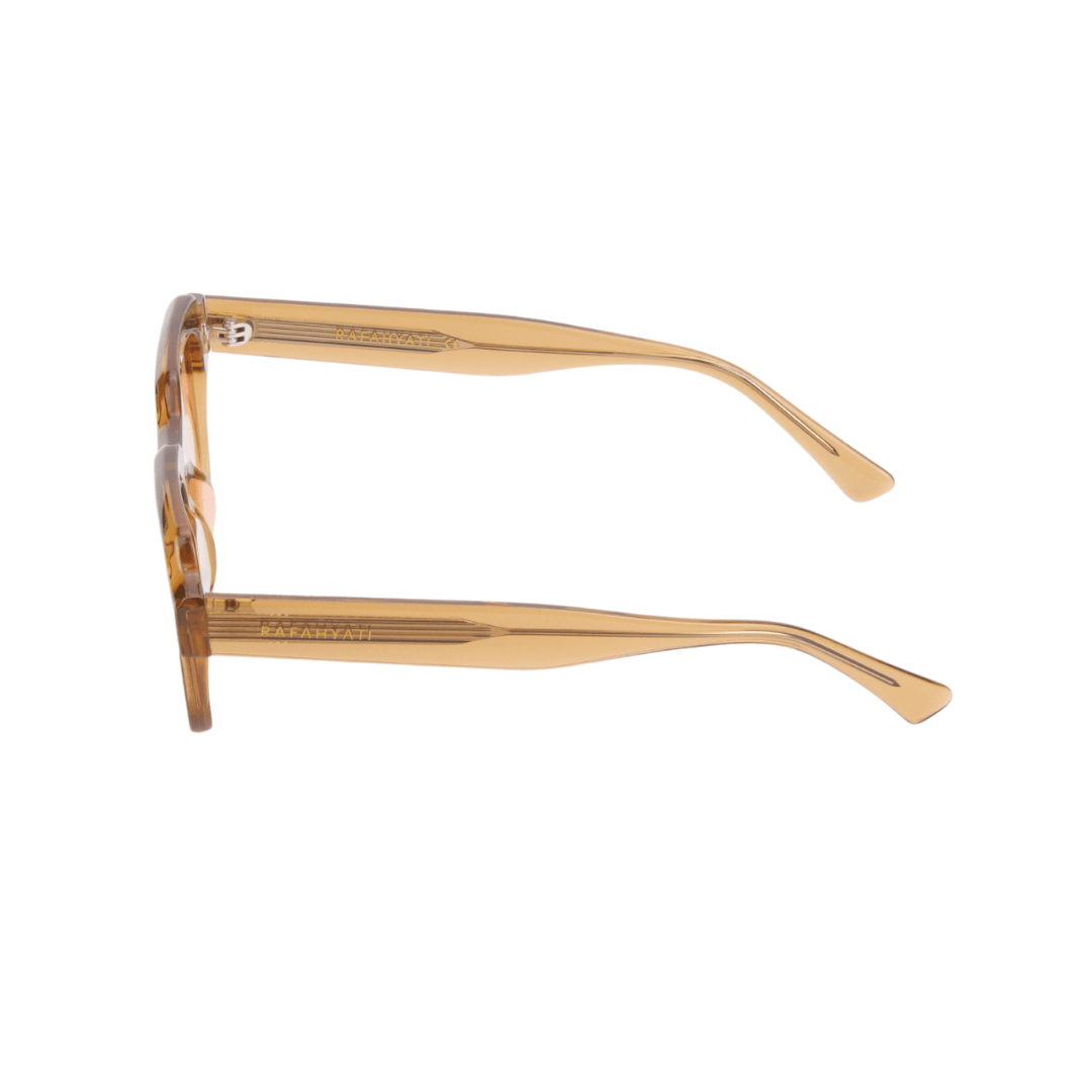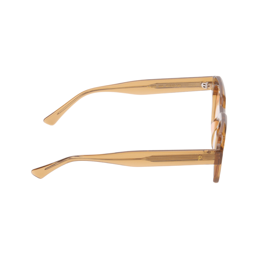 • Design : Monture rectangulaire imposante avec une finition translucide ambrée pour un look rétro-contemporain.