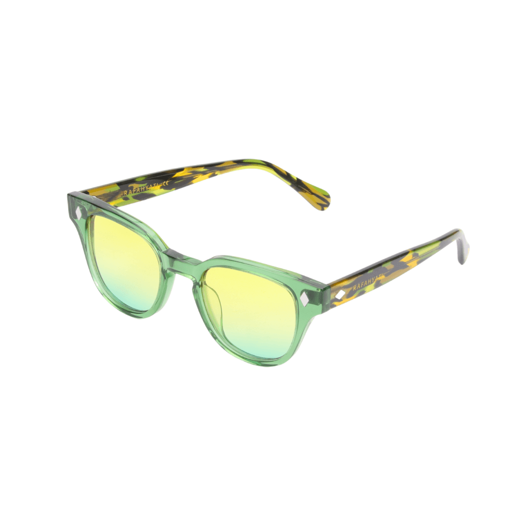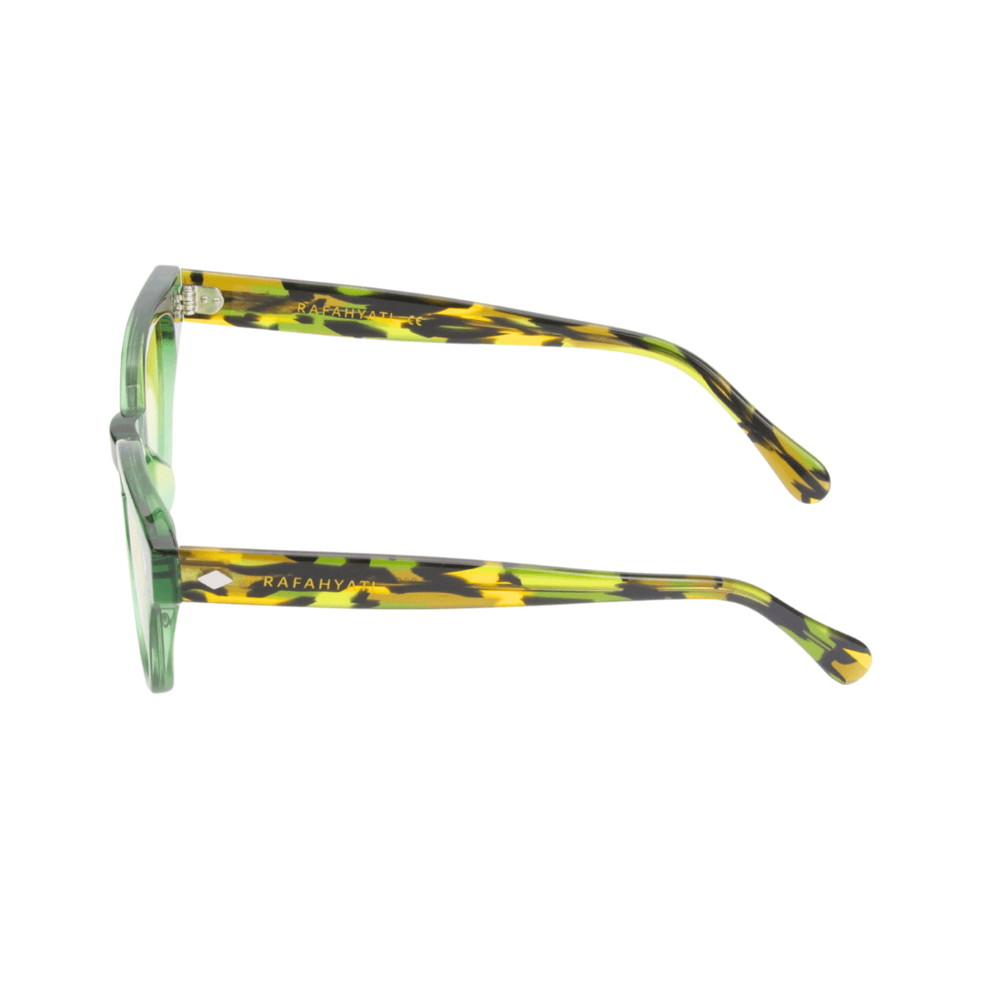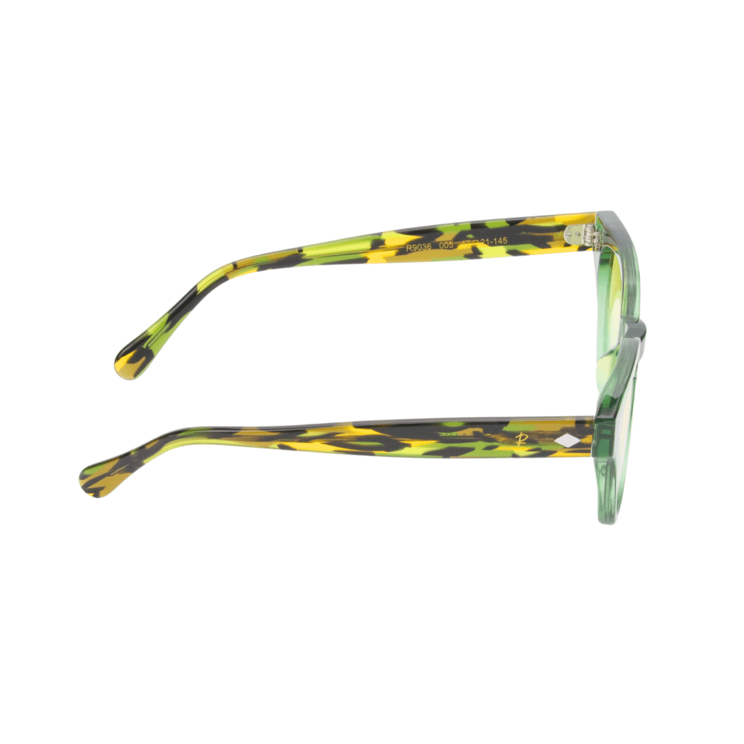 • Design : Monture ronde en acétate translucide vert, sublimée par des branches effet écaille pour une allure distinctive et élégante.
