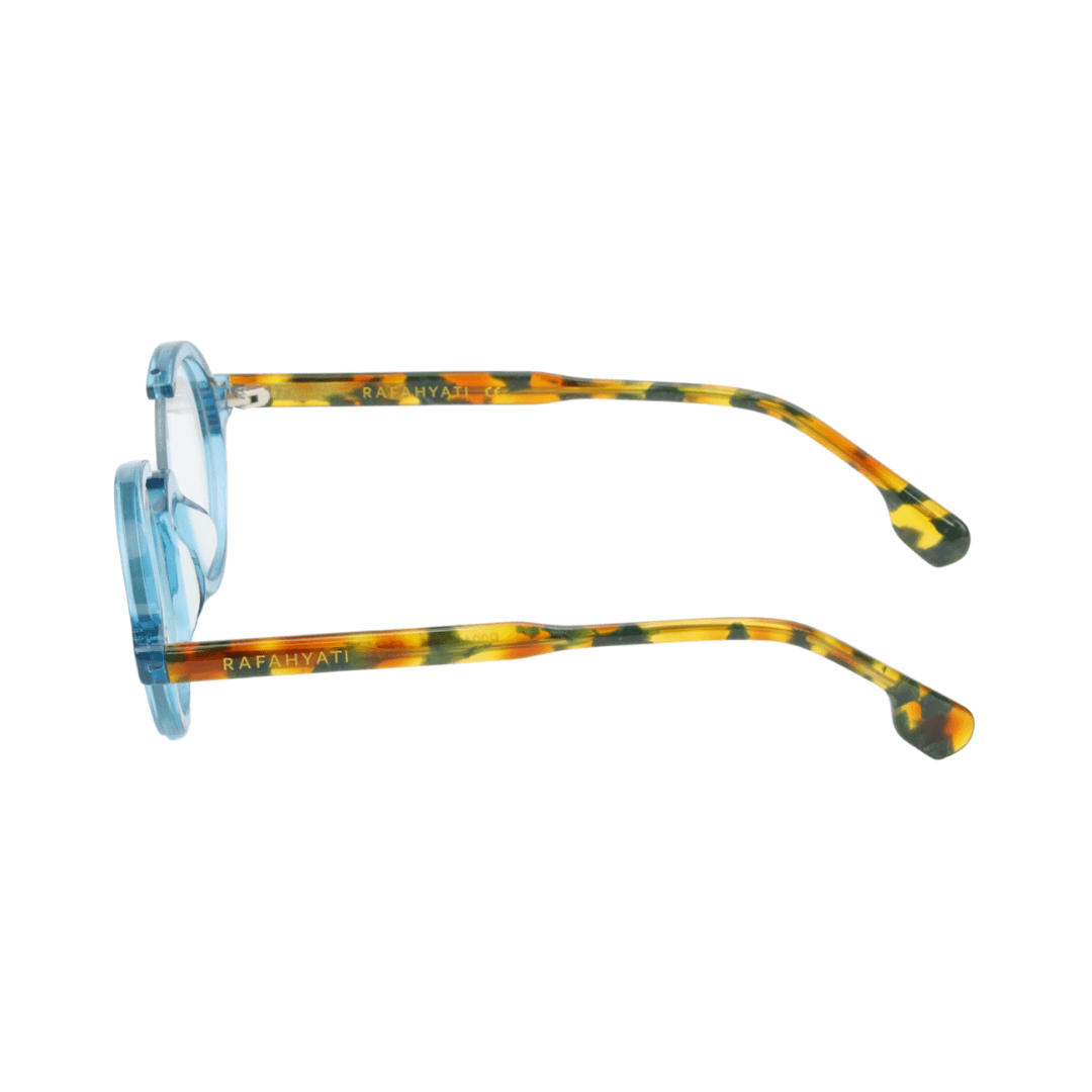 Associez protection et originalité avec les lunettes de protection Rafahyati, conçues pour allier style distinctif et confort optimal. Leur monture bleue translucide et leurs branches écaille multicolores offrent un look audacieux et raffiné.