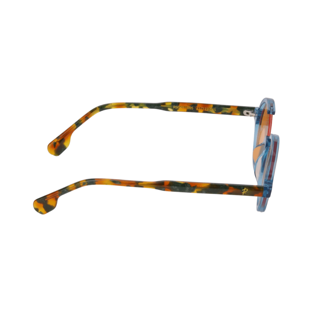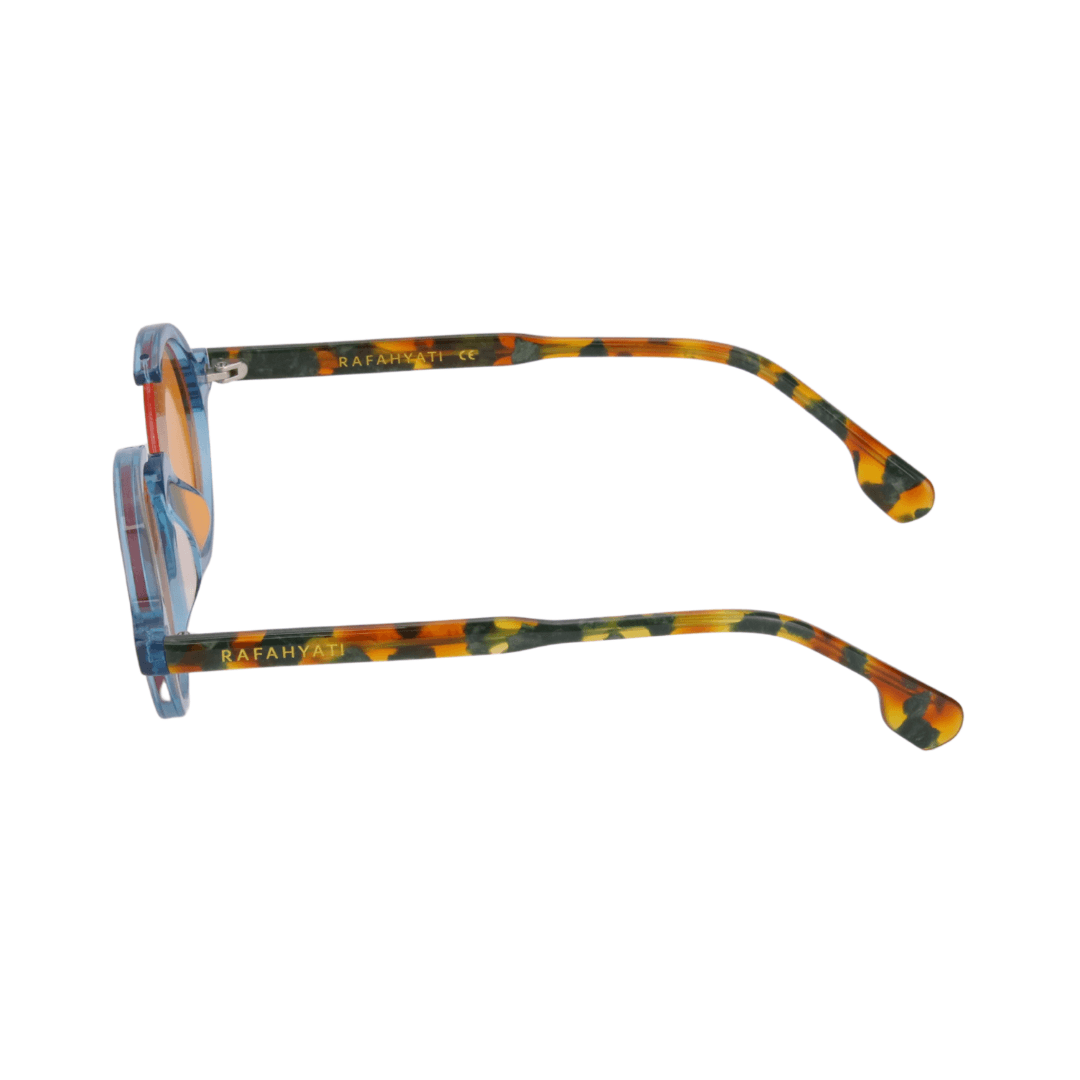 • Design : Monture ronde moderne, combinant une face bleu translucide avec des branches multicolores effet écaille, pour une touche originale et artistique.