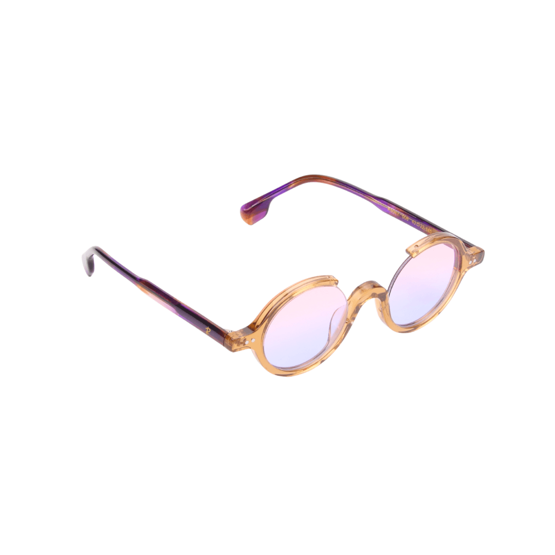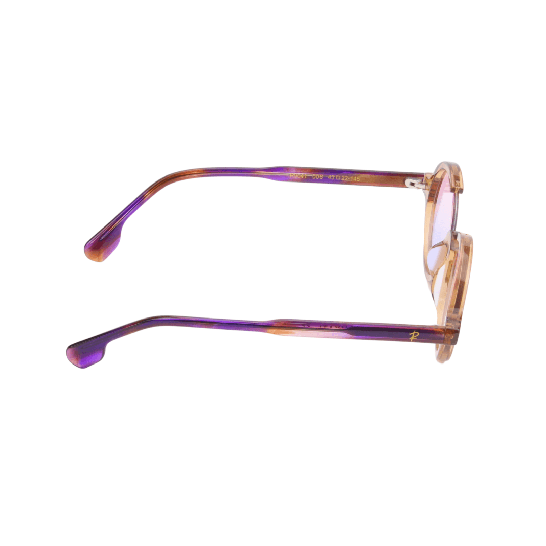 • Design : Monture ronde audacieuse avec une finition translucide ambrée et des branches violettes pour une touche moderne et élégante.