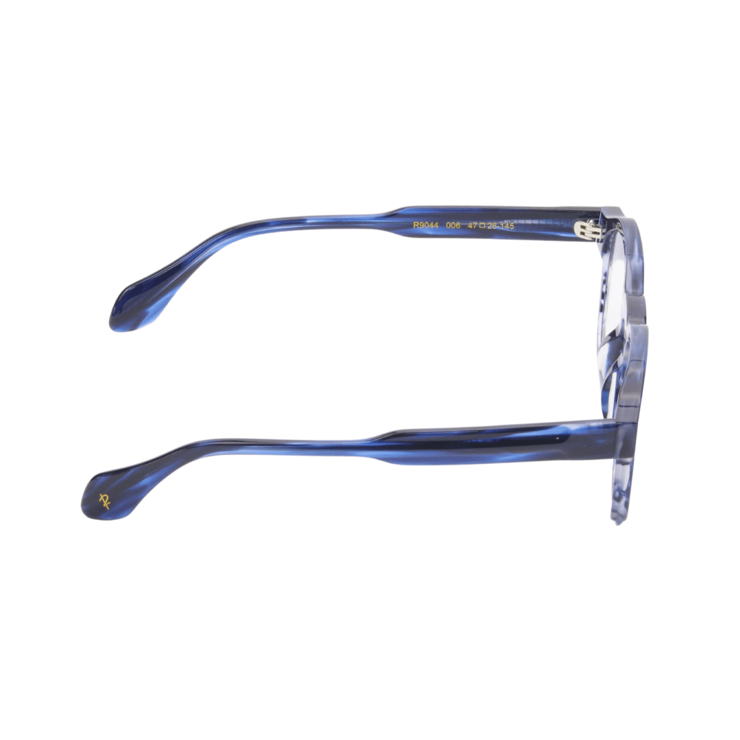 • Design : Monture ronde avec une finition en acétate bleu marbré pour un style sophistiqué.