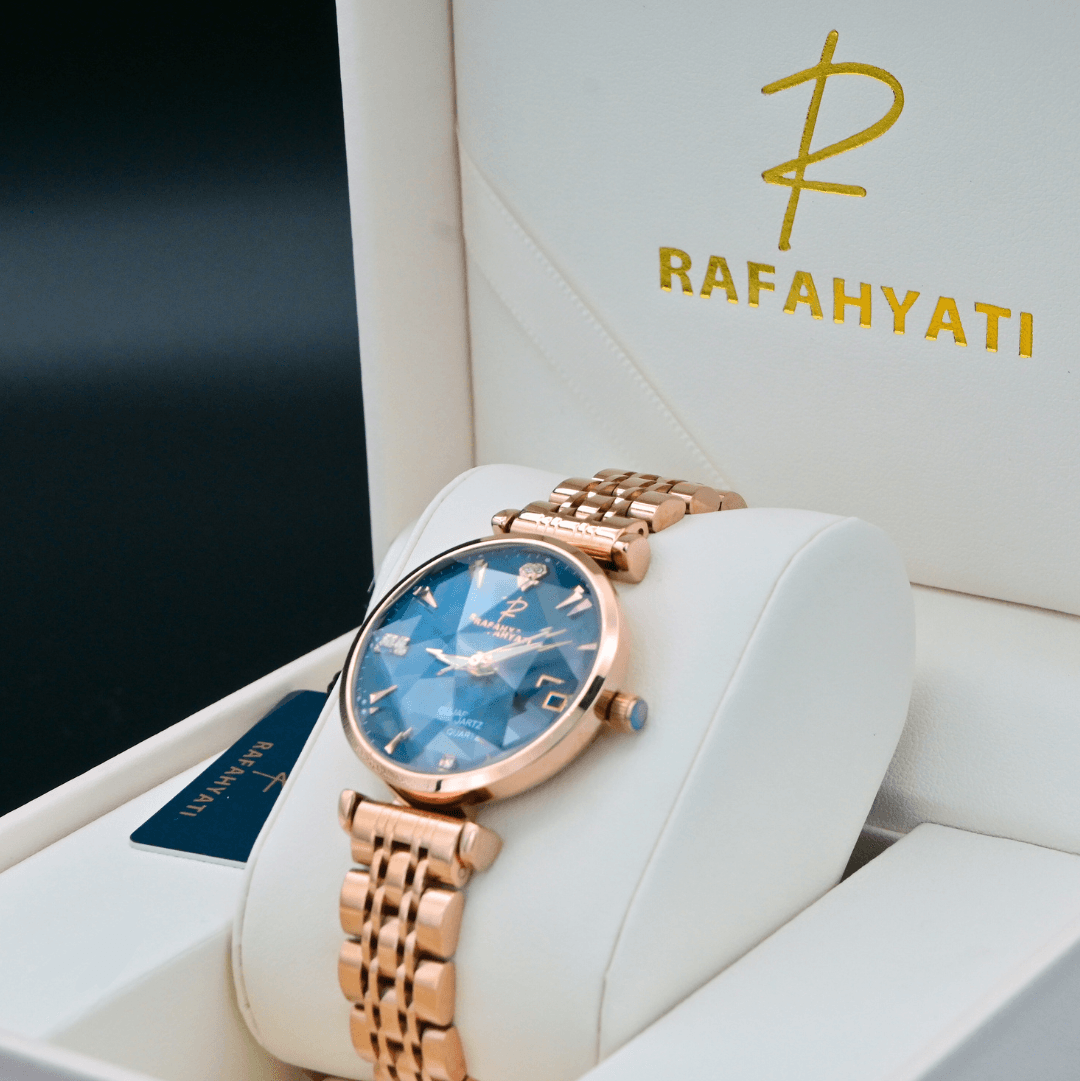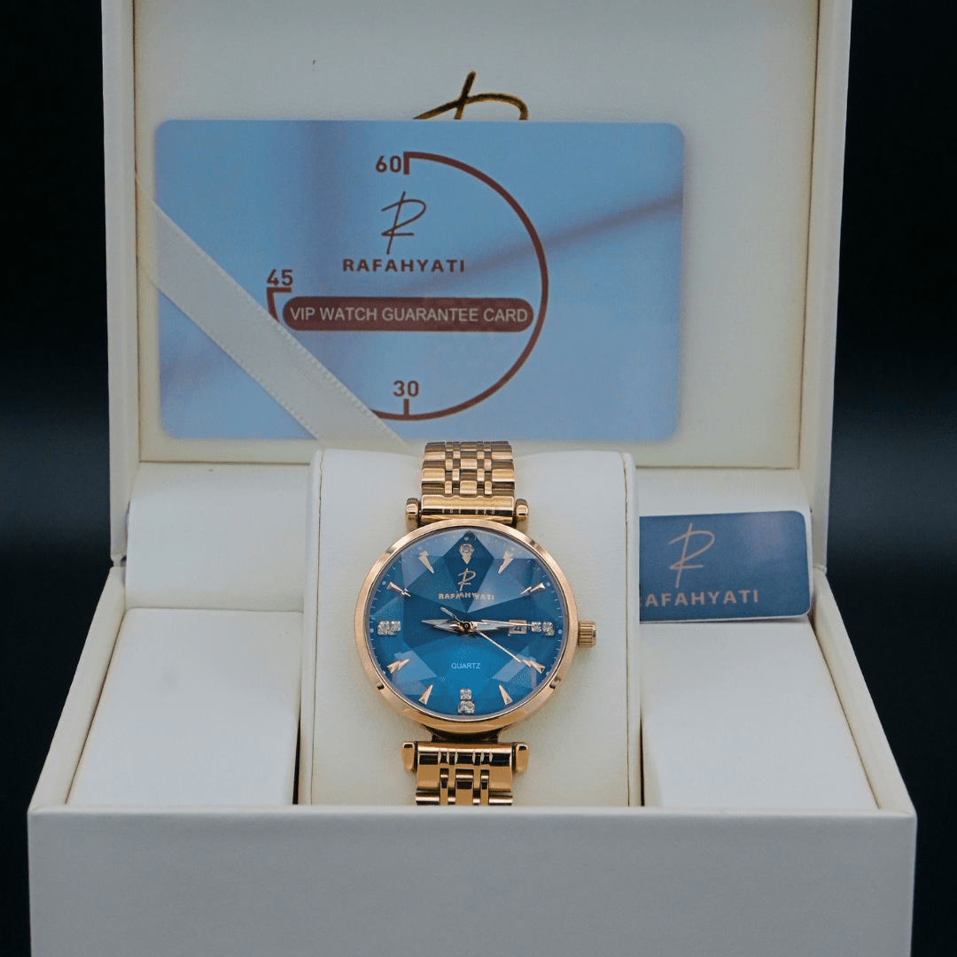 Chaque montre Rafahyati est livrée dans un écrin raffiné, accompagnée d’une carte de garantie VIP, affirmant son caractère exclusif et son engagement envers l’excellence.