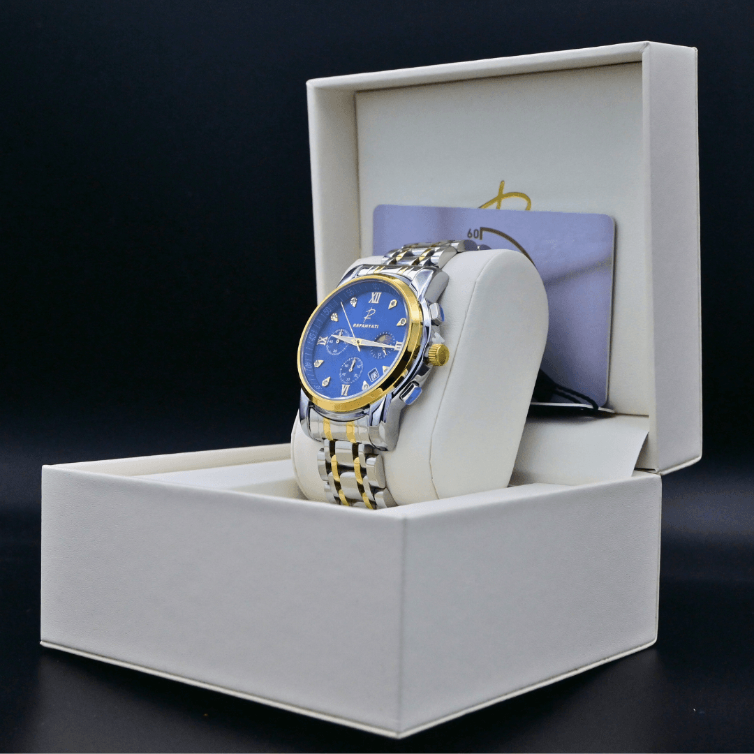 Sublimez votre poignet avec un garde-temps d’exception qui allie raffinement et performance. La Rafahyati 1747 est bien plus qu’une simple montre : elle incarne l’élégance, la précision et le prestige. Son cadran bleu profond, agrémenté de détails dorés et de cristaux étincelants, évoque le luxe et le charisme. Avec son bracelet en acier inoxydable bicolore, elle s’adapte aussi bien aux occasions formelles qu’aux instants du quotidien. Intégrez la famille Rafahyati et affirmez votre style avec distinction.