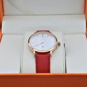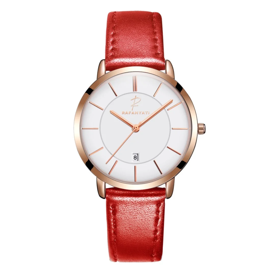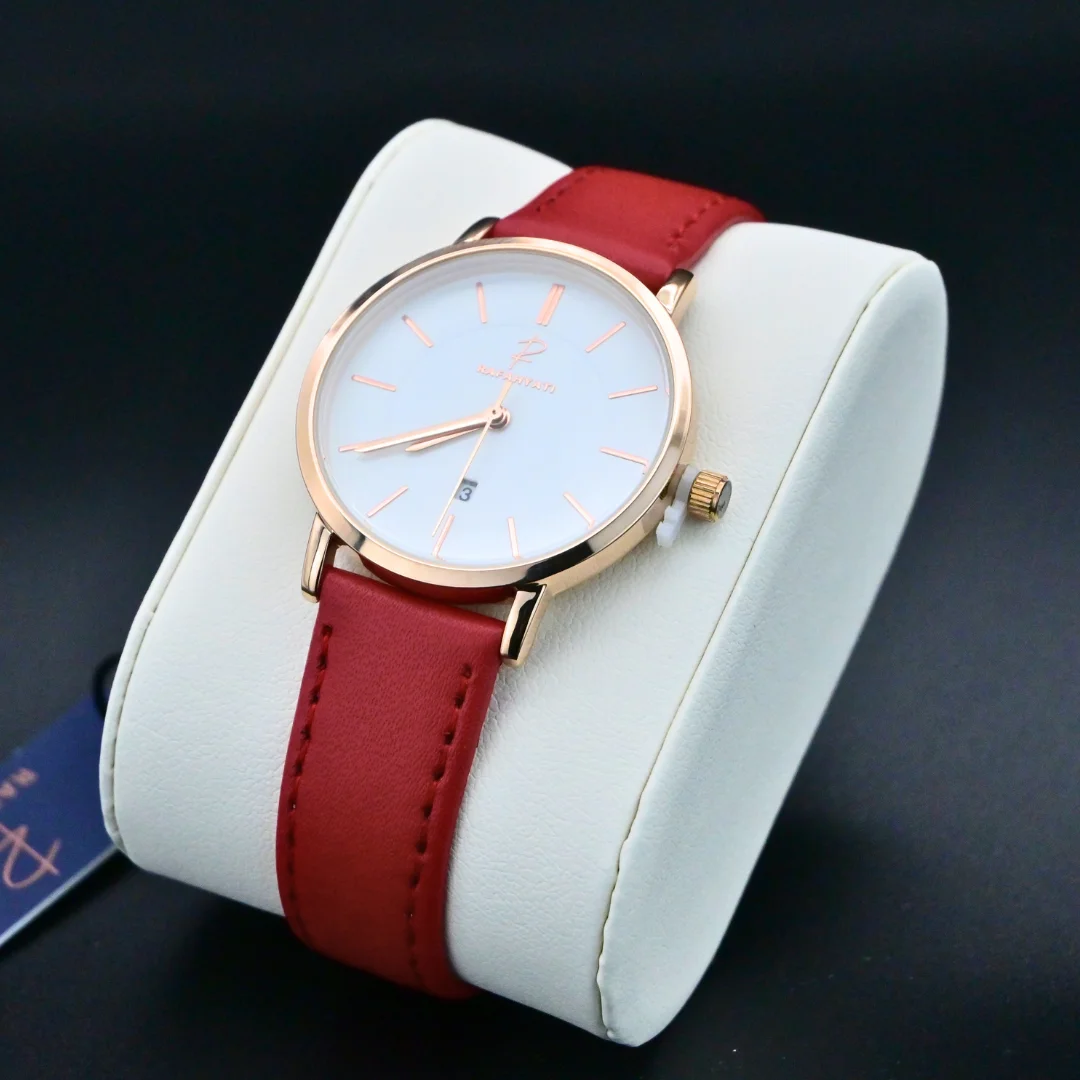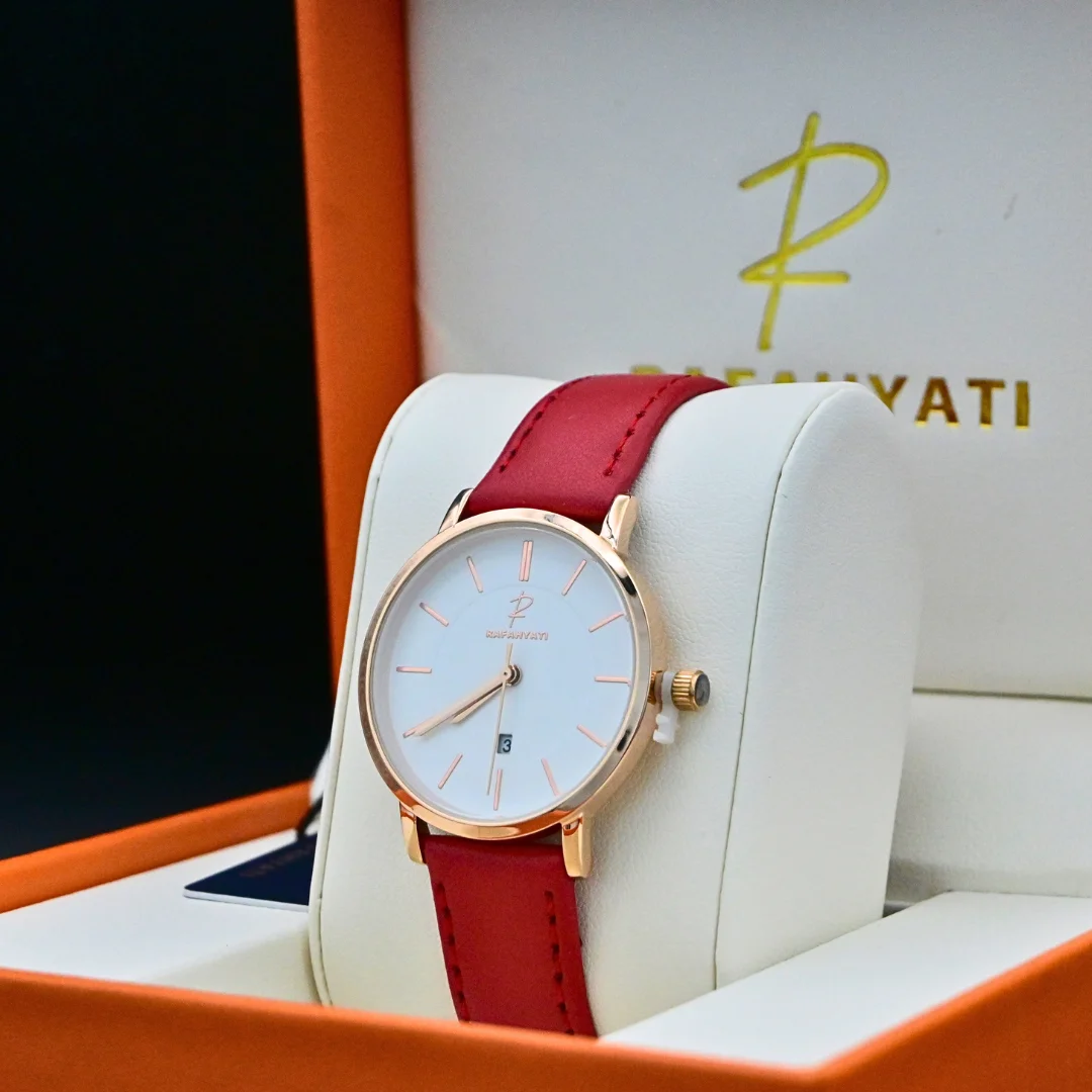 Découvrez la Rafahyati 4758, une montre féminine au design épuré et sophistiqué, parfaite pour celles qui recherchent une alliance entre élégance et simplicité. Avec son cadran blanc épuré et son bracelet en cuir rouge, cette montre est le symbole du raffinement au quotidien.