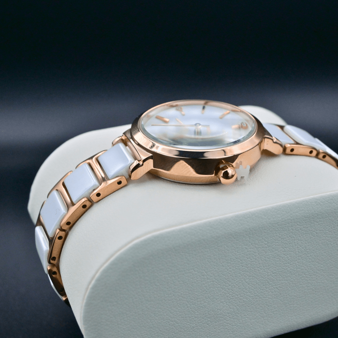Avec son bracelet en céramique blanche et acier inoxydable doré rose, ce bijou d’exception deviendra l’allié parfait de votre quotidien. Plus qu’une simple montre, elle symbolise votre appartenance à une communauté où luxe et élégance se rencontrent.