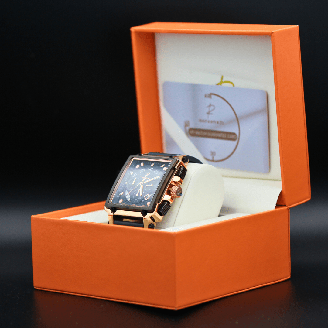 Découvrez la Rafahyati 8808, une montre conçue pour les amateurs de style sophistiqué et de performance de précision. Cette pièce horlogère exclusive incarne l’essence du luxe moderne avec son design carré audacieux et son chronographe de haute précision.
