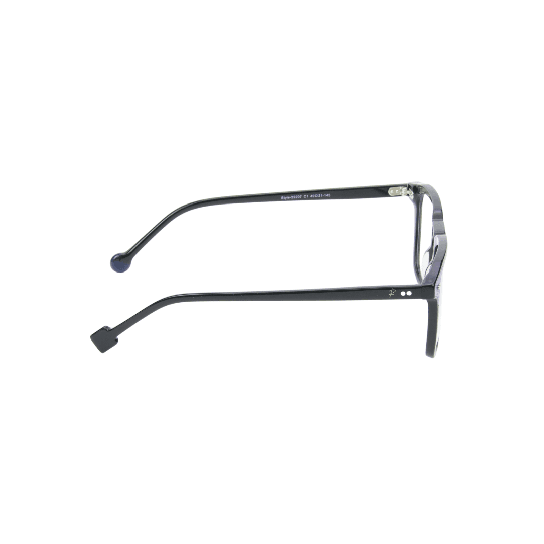 • Design : Monture carrée (square) en noir avec des détails bleus sur les coins et le pont, associant élégance et caractère.