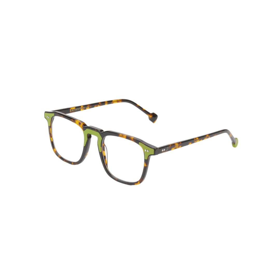 • Design : Monture carrée en écaille avec des détails verts, alliant style et originalité.
