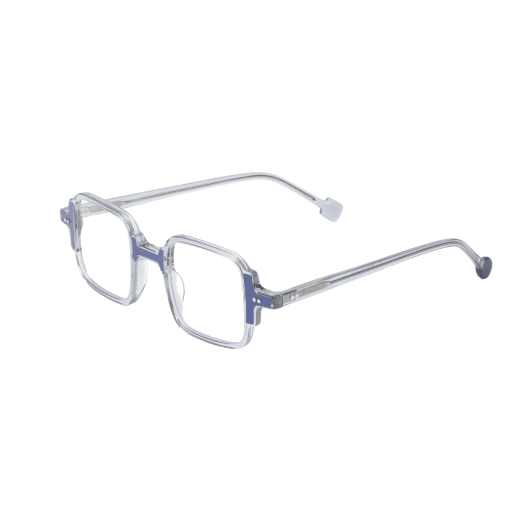 - Design : Monture carrée transparente avec des détails en bleu, pour un équilibre parfait entre élégance et protection.