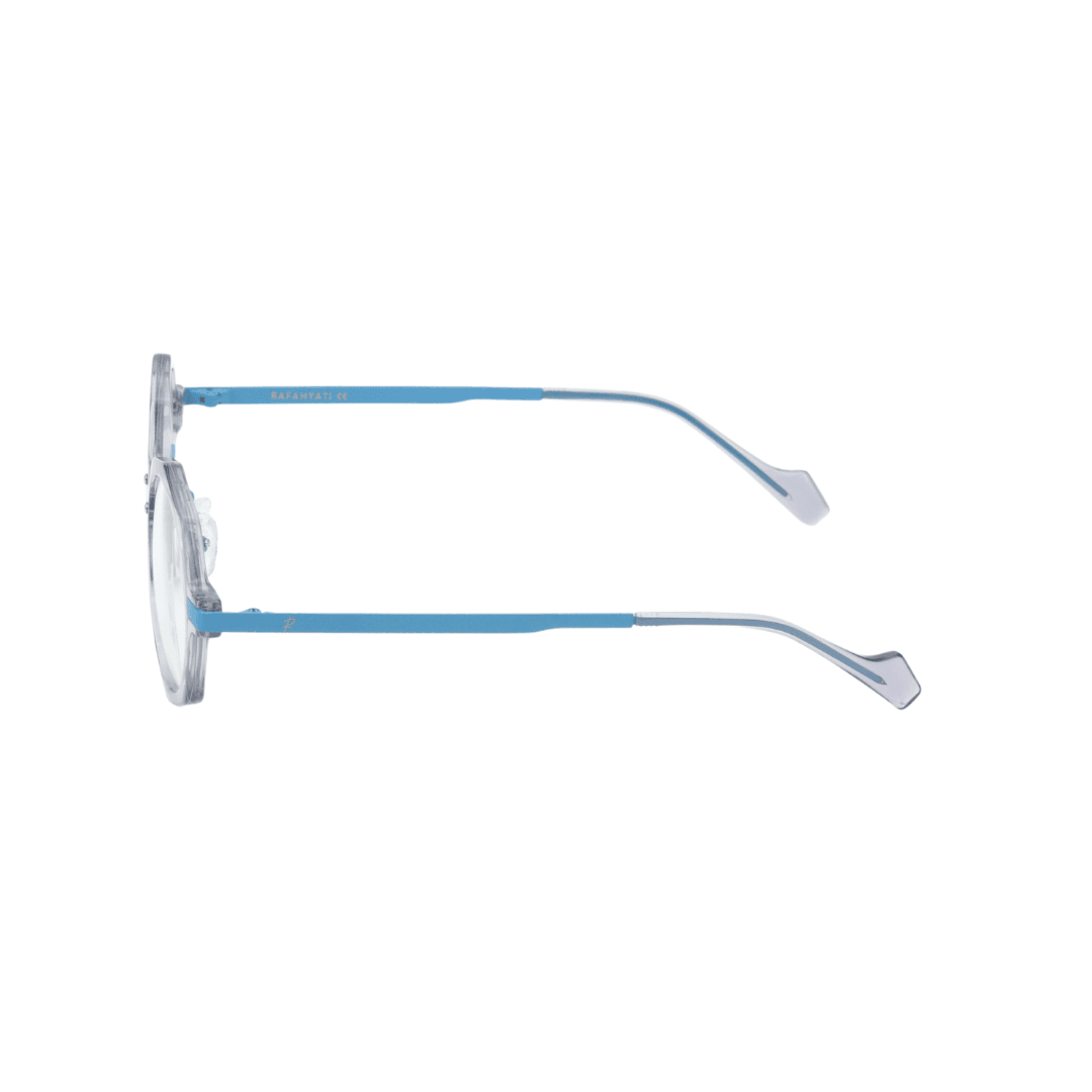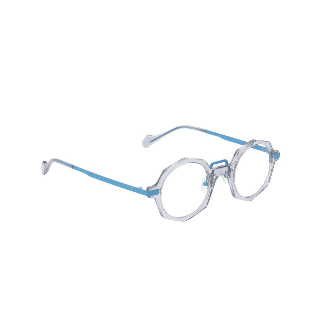 - Design : Monture octogonale avec une finition transparente et des détails bleus, pour un look audacieux et distinctif.