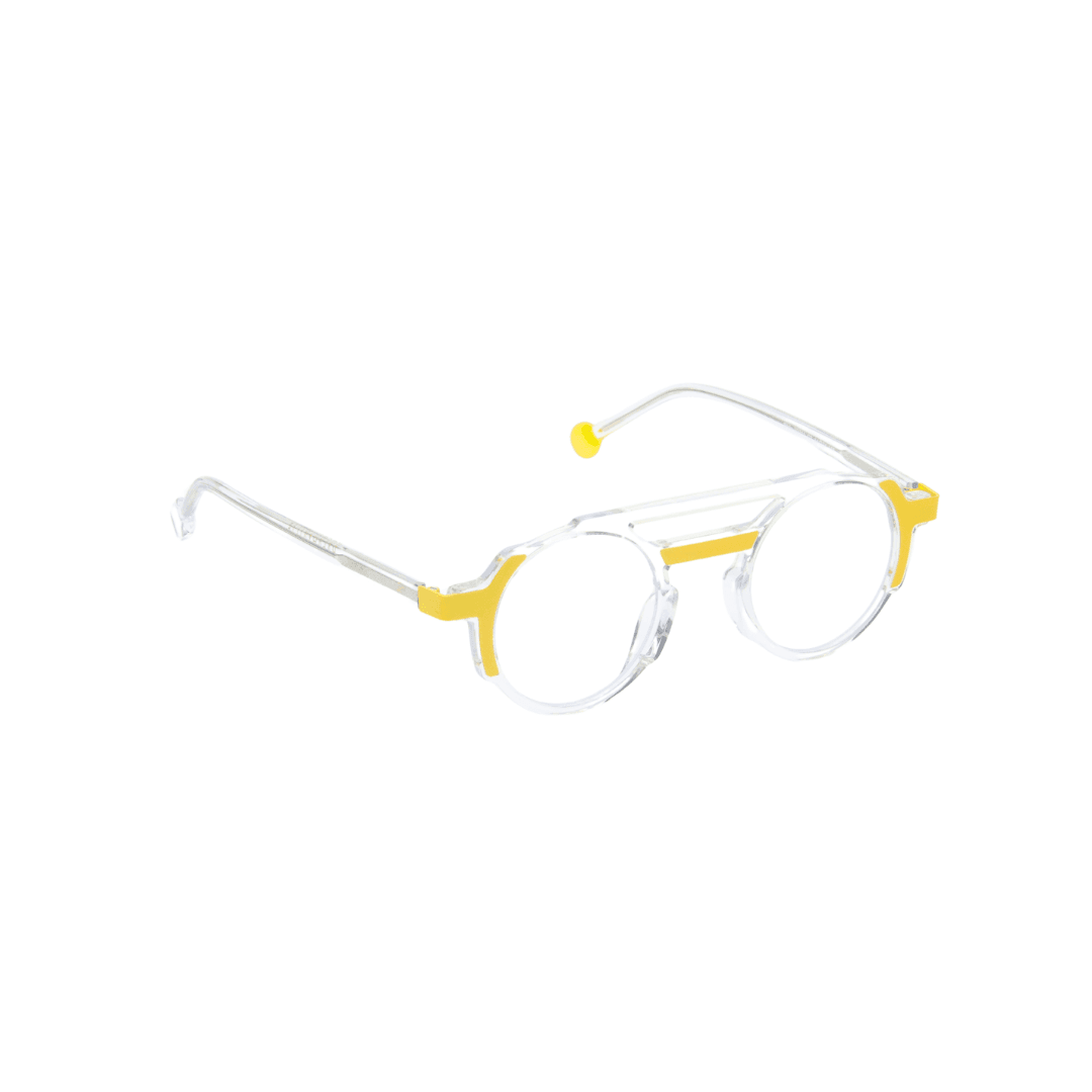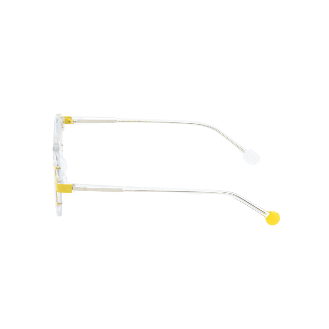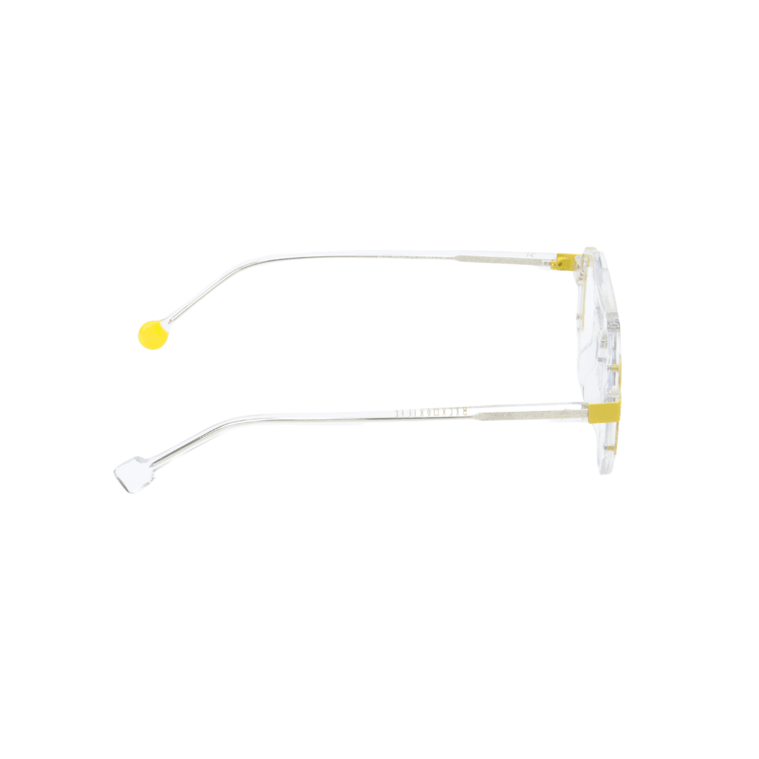 • Design : Monture ronde avec une structure transparente et des détails jaunes pour une touche audacieuse et élégante.