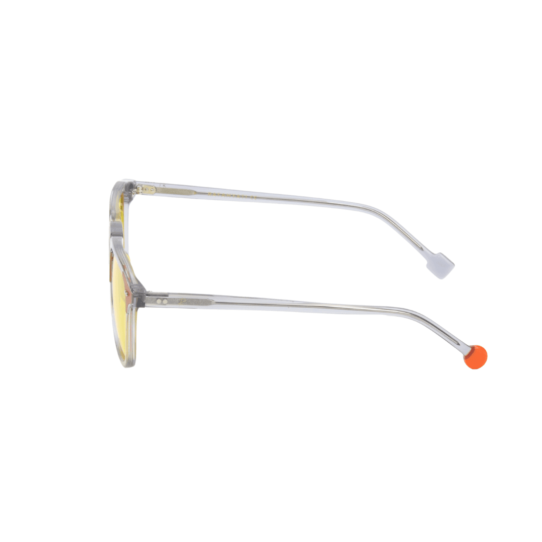 Apportez une touche d’audace et de modernité à votre style avec ces lunettes de soleil Rafahyati. Leur design carré et leur monture translucide agrémentée de détails orange confèrent une allure à la fois dynamique et élégante. Les verres teintés jaune ajoutent une touche vibrante et lumineuse, idéale pour un look original et tendance.