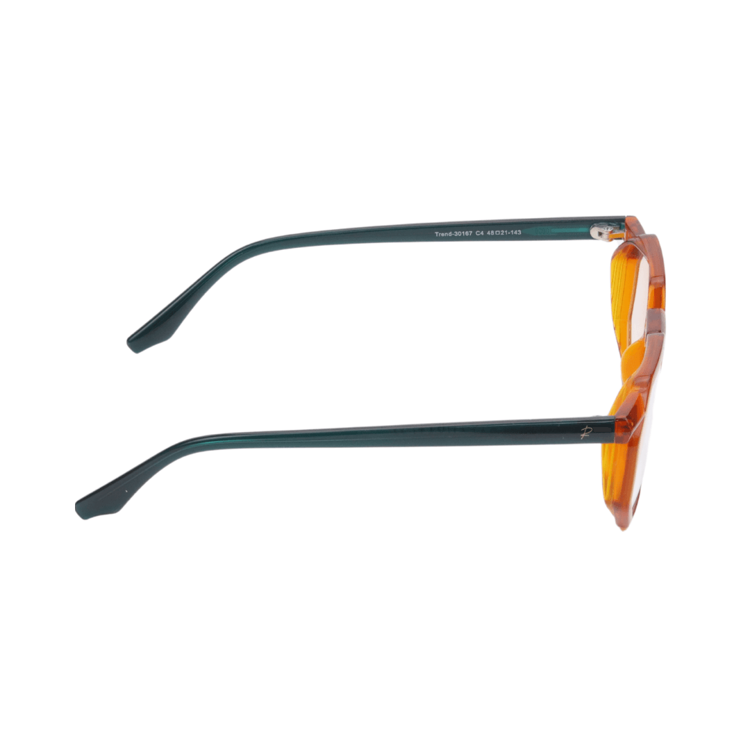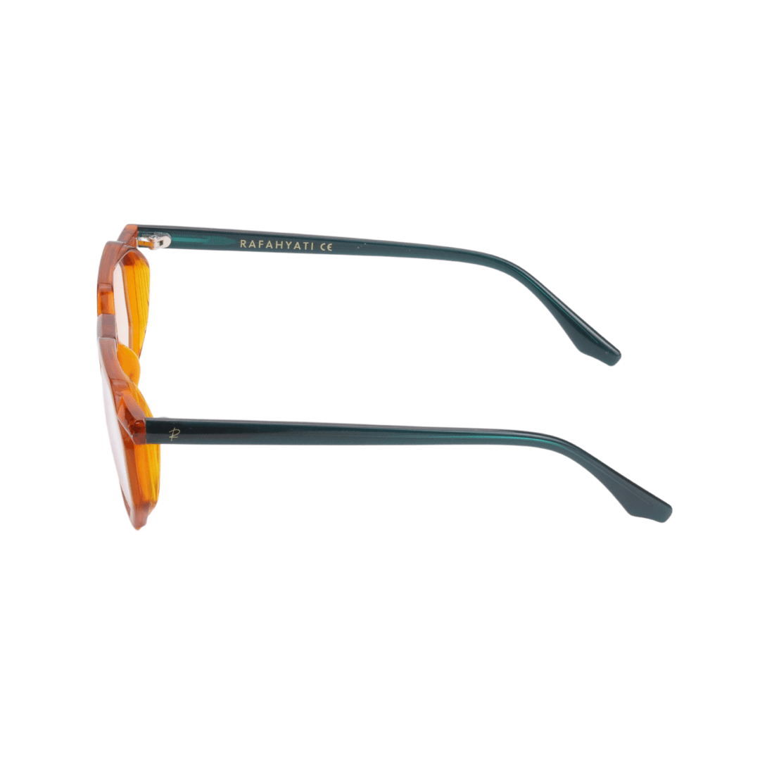 • Design :Forme géométrique, moderne et audacieuse. Finition en orange translucide avec branches bleu foncé, pour un look dynamique et tendance
