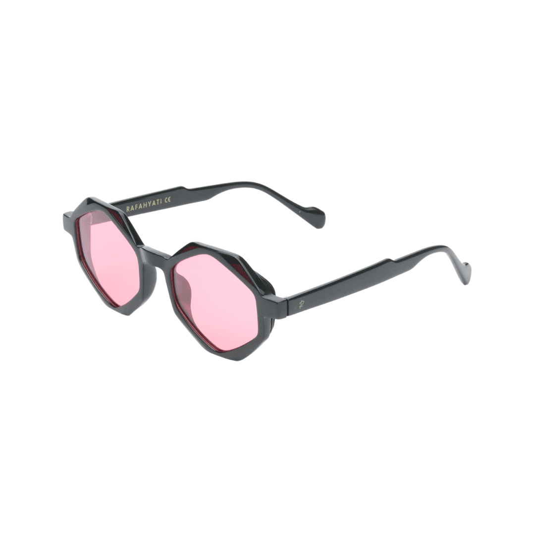 Exprimez votre style unique avec ces lunettes de soleil Rafahyati, au design octogonal distinctif. Parfaites pour une allure moderne et audacieuse, elles se démarquent par leur monture noire en bio-acétate de haute qualité et leurs verres teintés rose, offrant une touche de sophistication et de caractère.