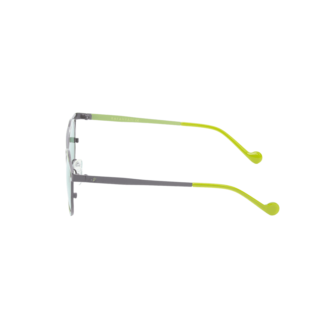 Alliez style et performance avec ces lunettes de soleil Rafahyati, conçues pour offrir un look moderne et distinctif. Leur design circulaire/aviateur revisité, agrémenté de branches bicolores gris et vert citron, en fait un accessoire unique et raffiné.