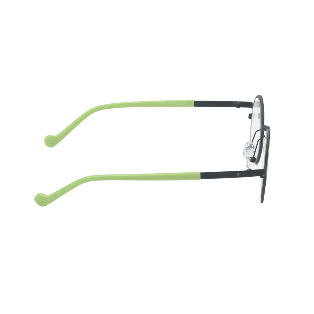 • Design : Monture ronde (round) noire avec des accents verts, alliant élégance et originalité.
