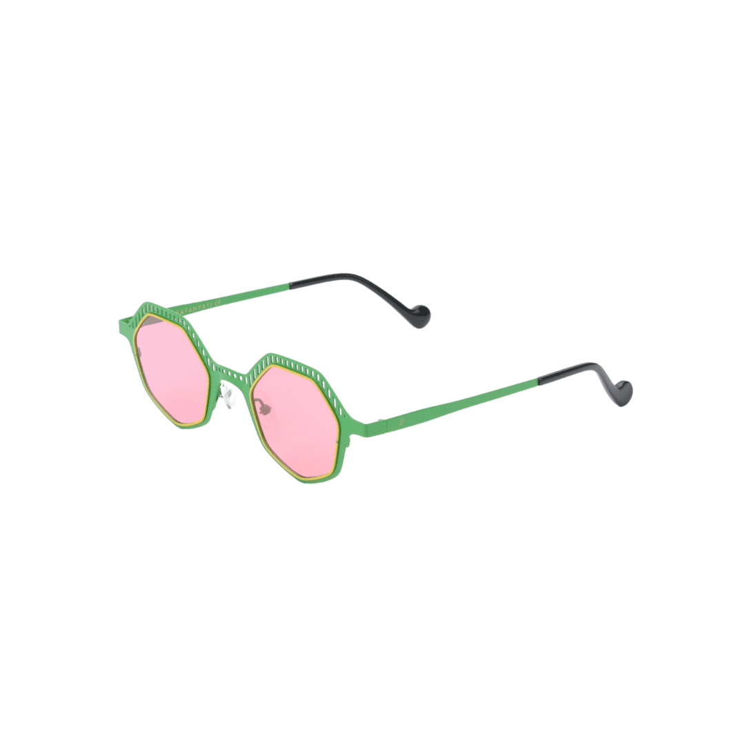 Apportez une touche de modernité et d’audace à votre look avec ces lunettes de soleil Rafahyati. Leur design rond et leur monture bicolore vert et noir offrent une allure unique et élégante, parfaite pour se démarquer avec style.