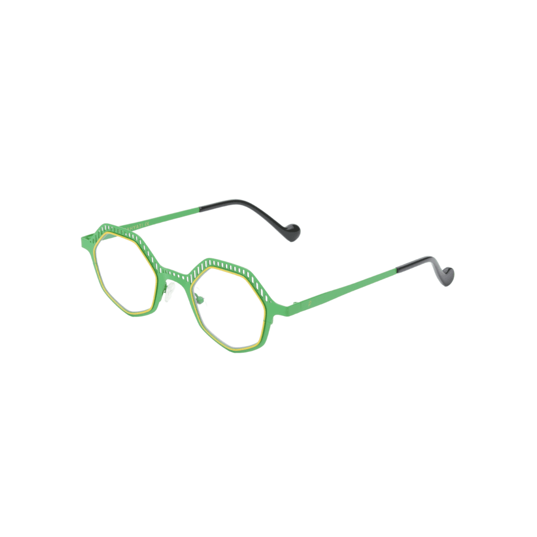 • Design : Monture octogonale ajourée avec une combinaison de couleurs vert et jaune pour un look dynamique et distinctif.