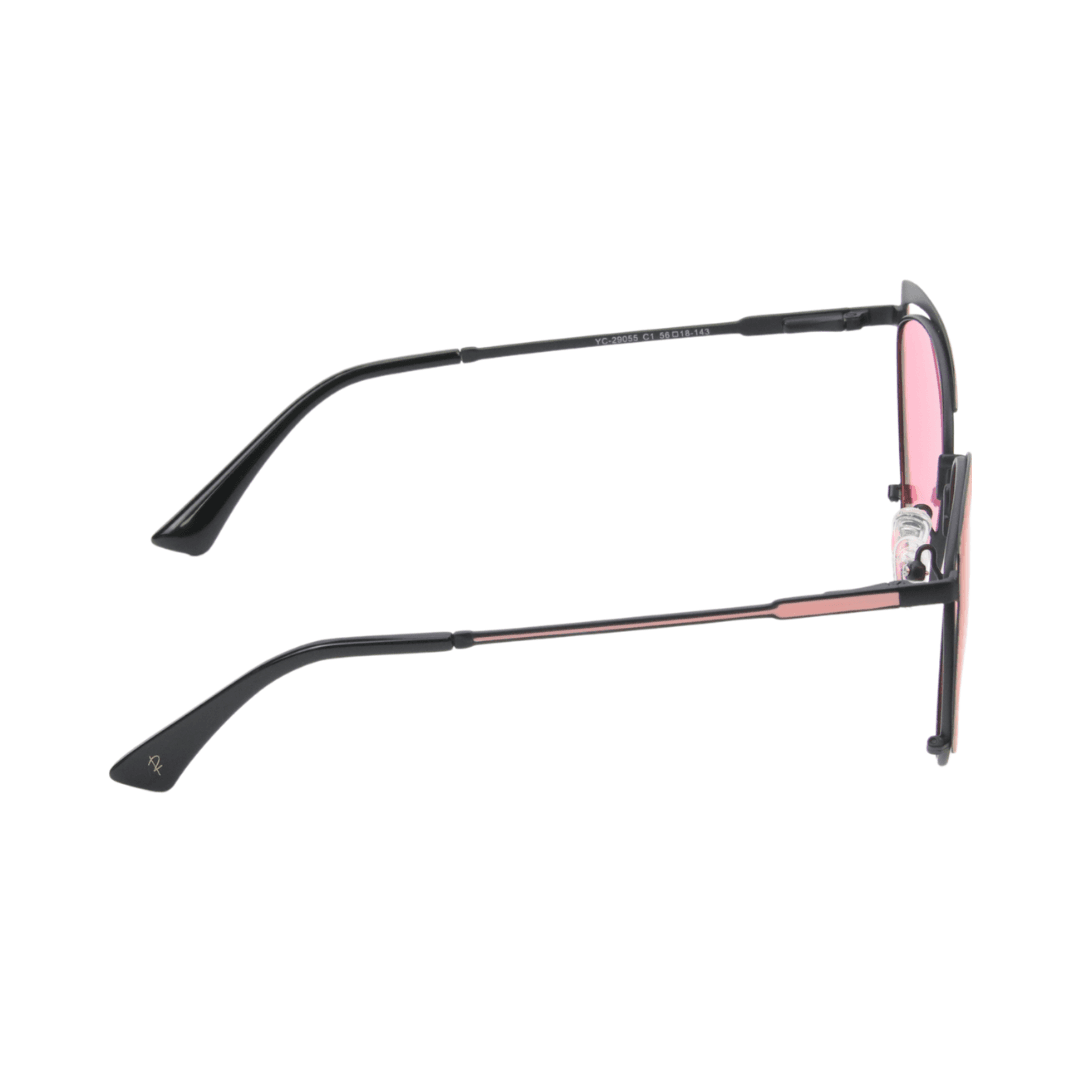 - Design : Monture œil de chat avec une finition en métal noir et détails en rose, alliant modernité et raffinement.